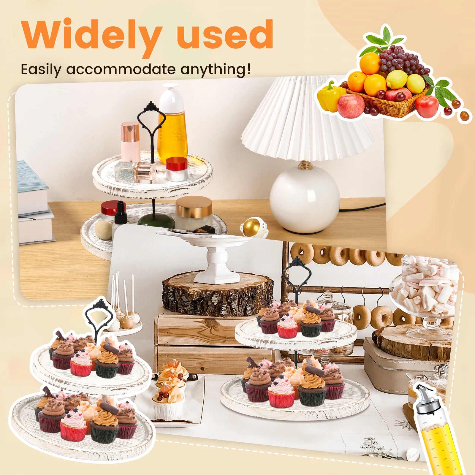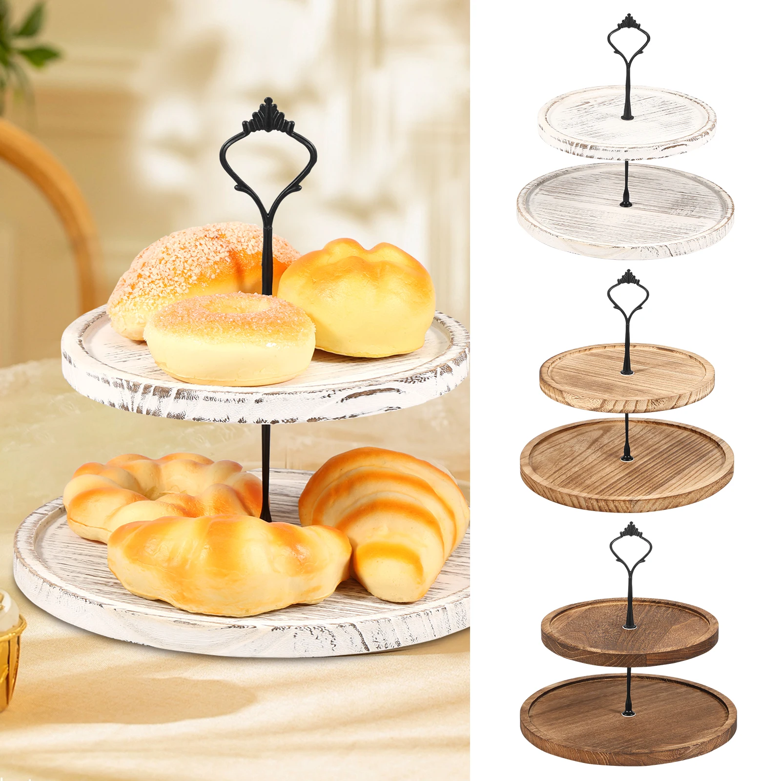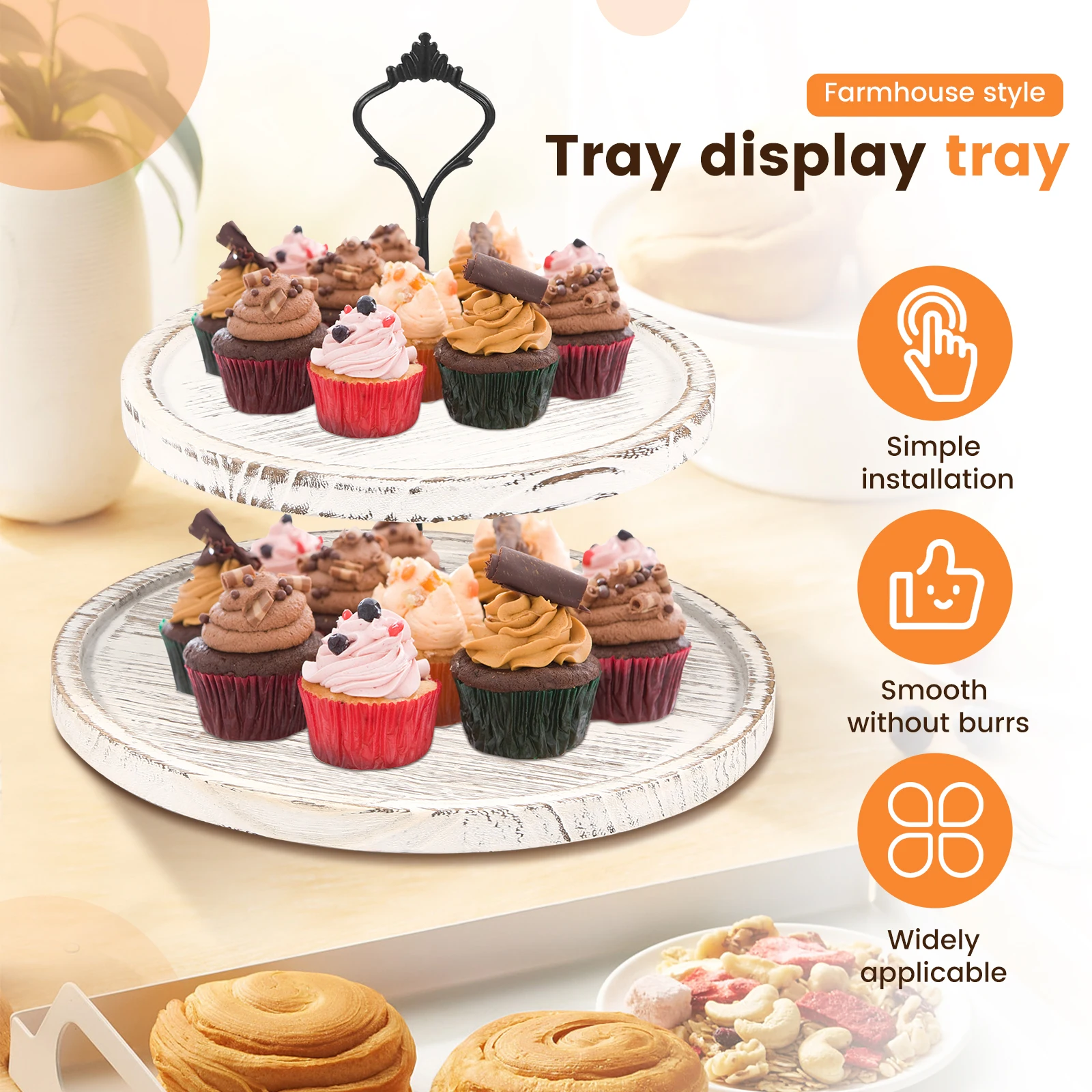 2)Vintage Appearance: This wood cupcake stand tray features hand carved wood and 2 tiers design, which creates vintage and modern elegance. Decorative and eye catching. Ideal decoration to your home