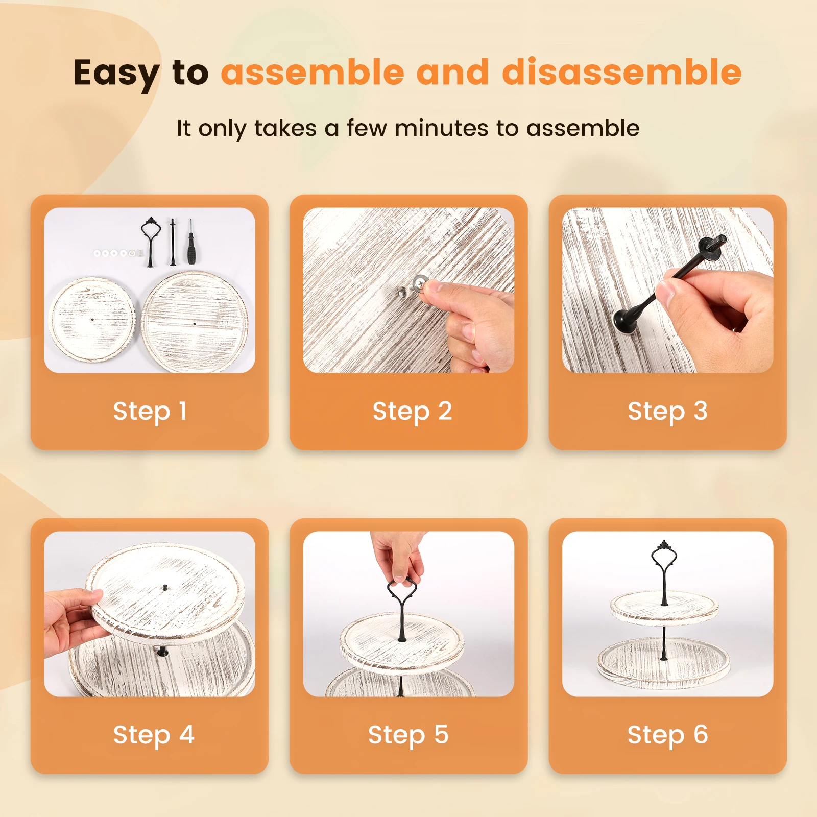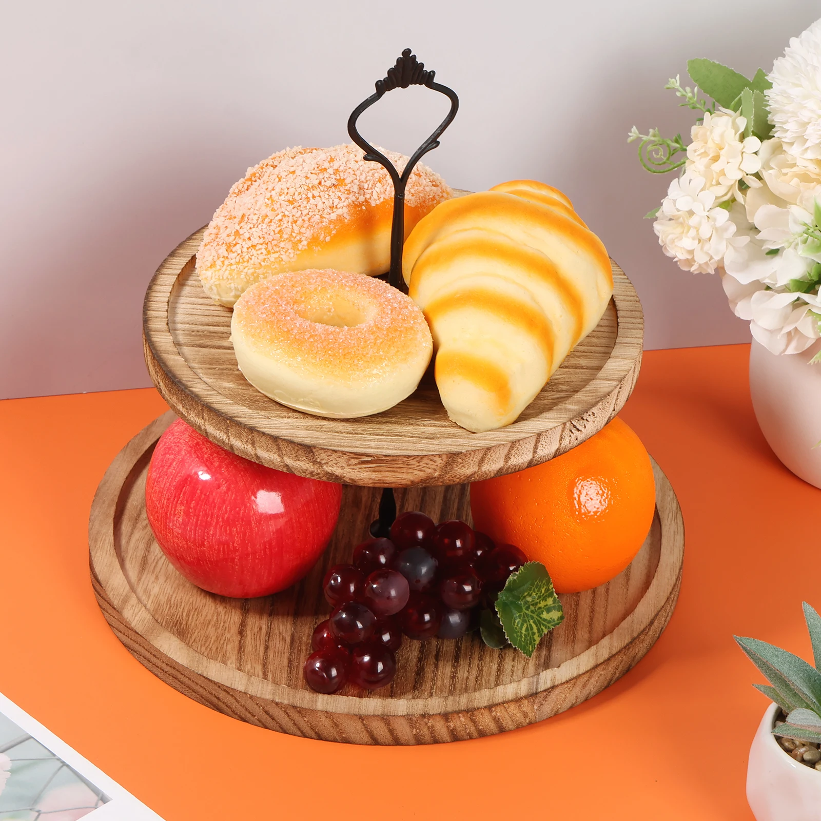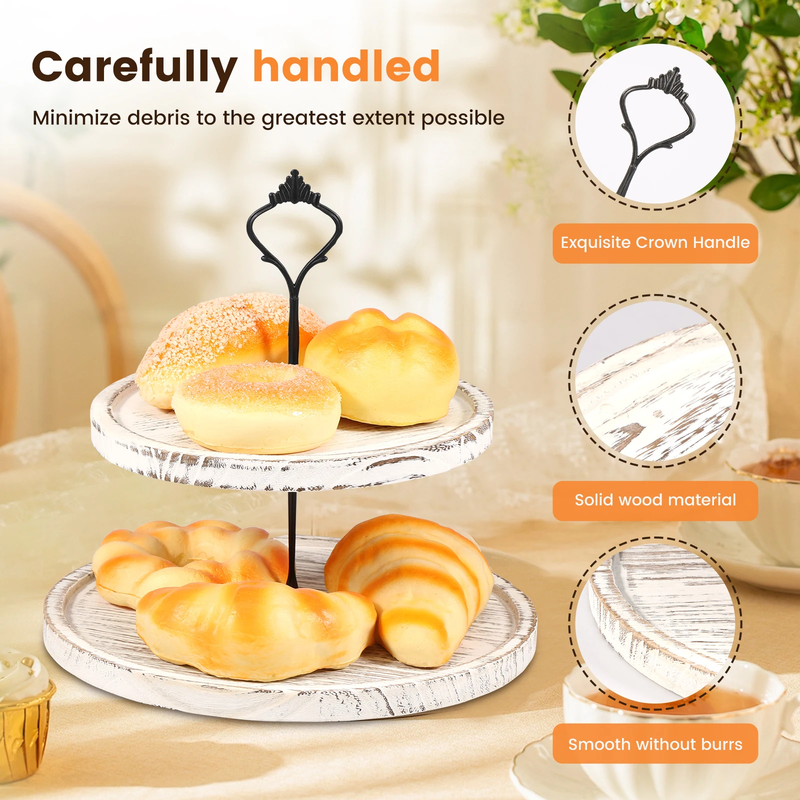 2)Vintage Appearance: This wood cupcake stand tray features hand carved wood and 2 tiers design, which creates vintage and modern elegance. Decorative and eye catching. Ideal decoration to your home