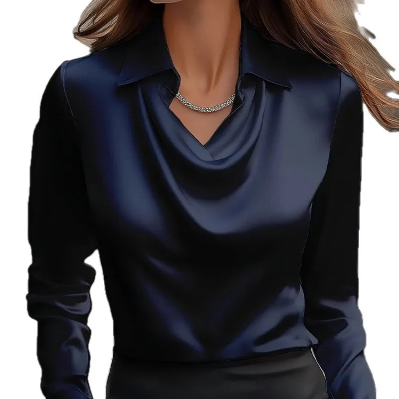 2025 Fall/Winter Women's Lapel Long Sleeve Shirt Temperament Simple and Thin Commuter Top Burgundy Comfortable Pullover Top