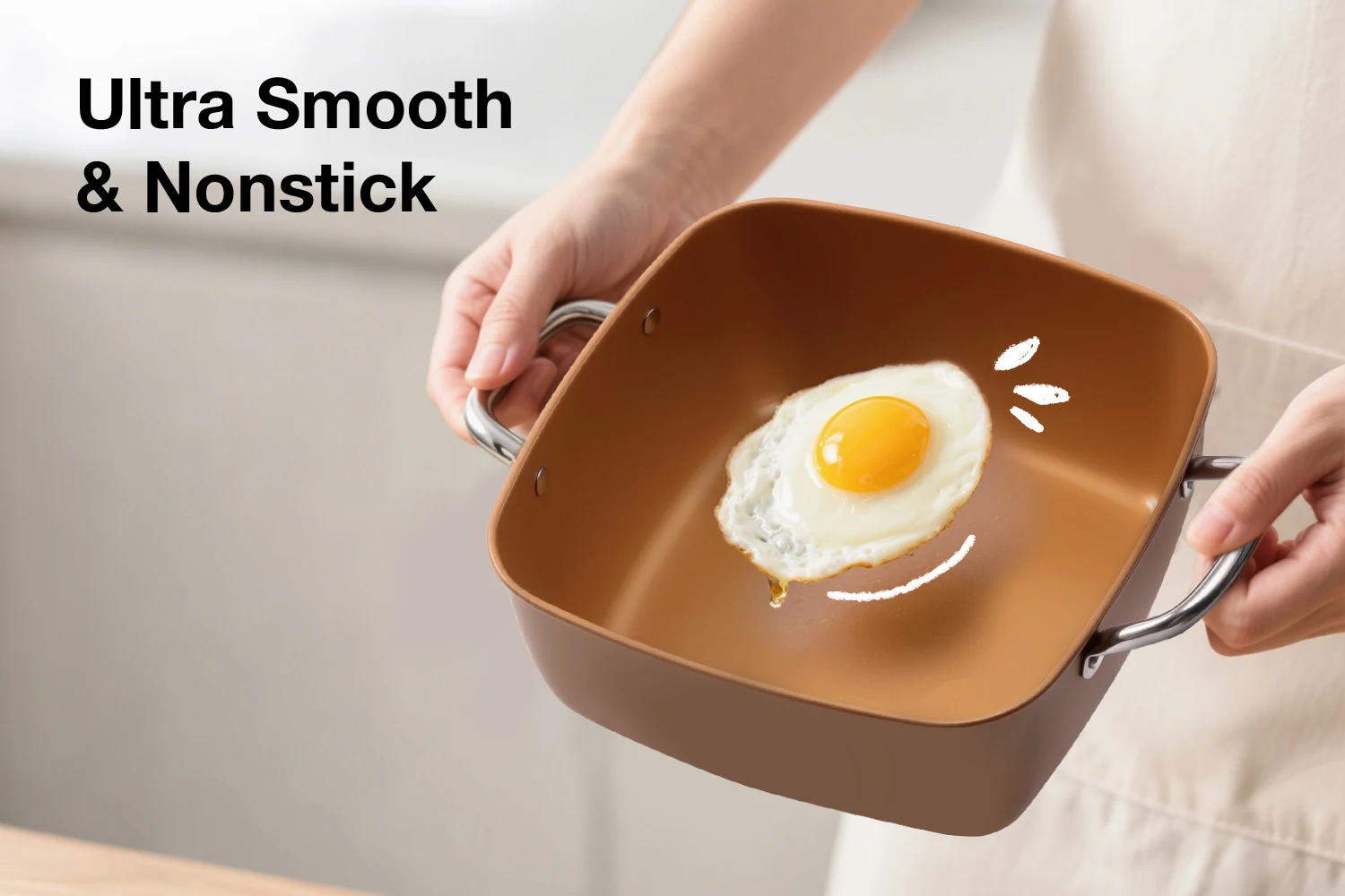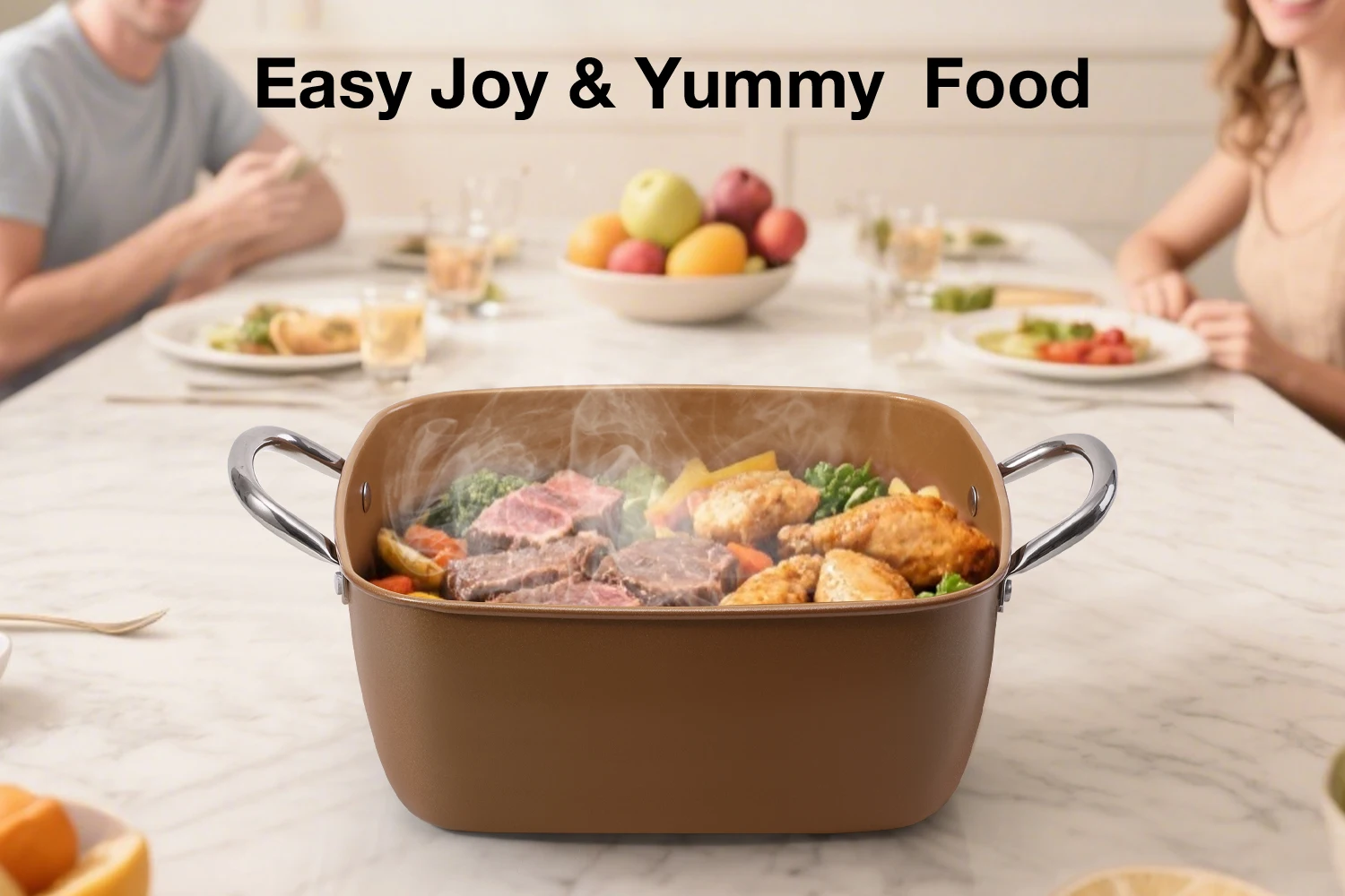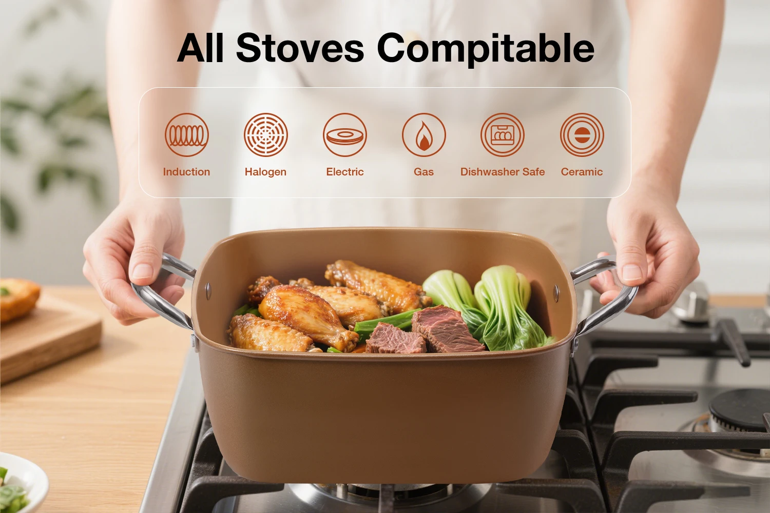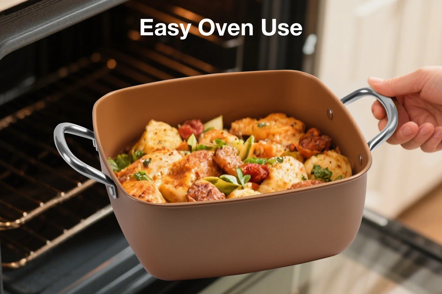 9.5” Non Stick Deep Frying Pan with Fry Basket Steamer Rack and Glass Lid Multi-Large Cooking Pan Stove Suitable Dishwasher Safe