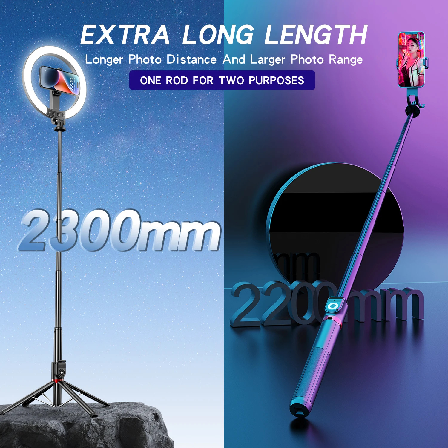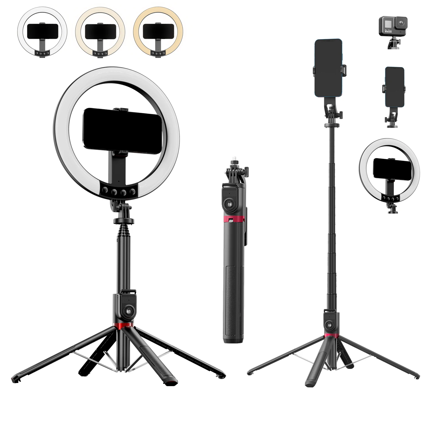 90" Selfie Stick Tripod and Phone Holder with 10" Dimmable LED Ring Light and Remote Shutter for Photography and Vlogging