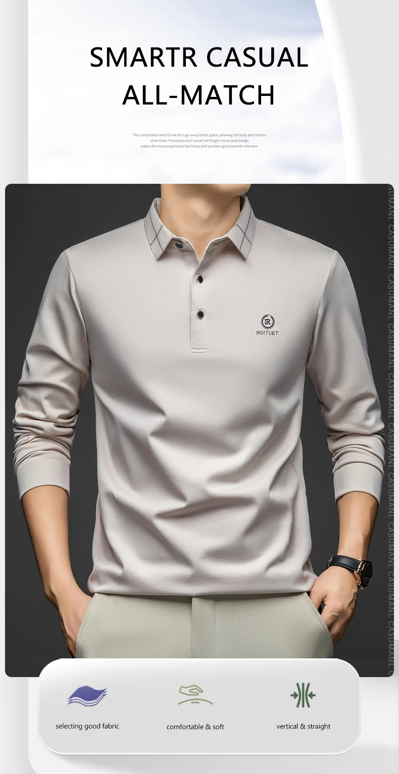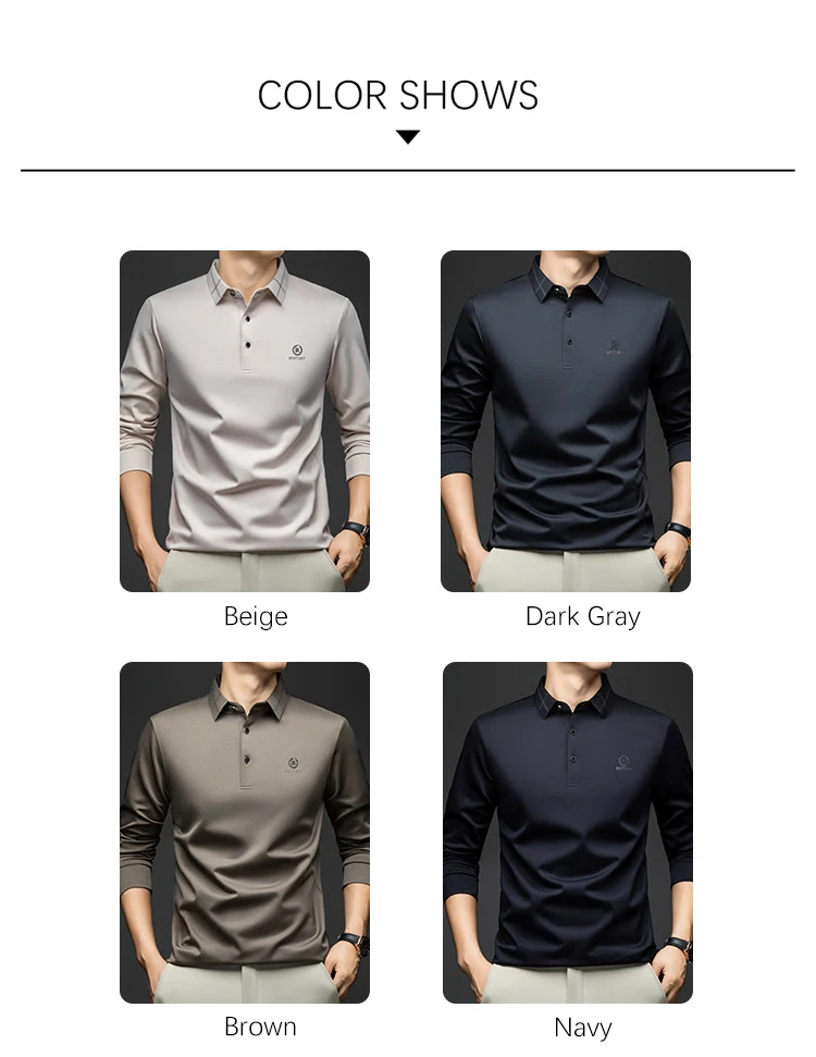 BROWON Polo Shirt for Man 2025 Spring Autumn Men Long Sleeve Polo Shirts,