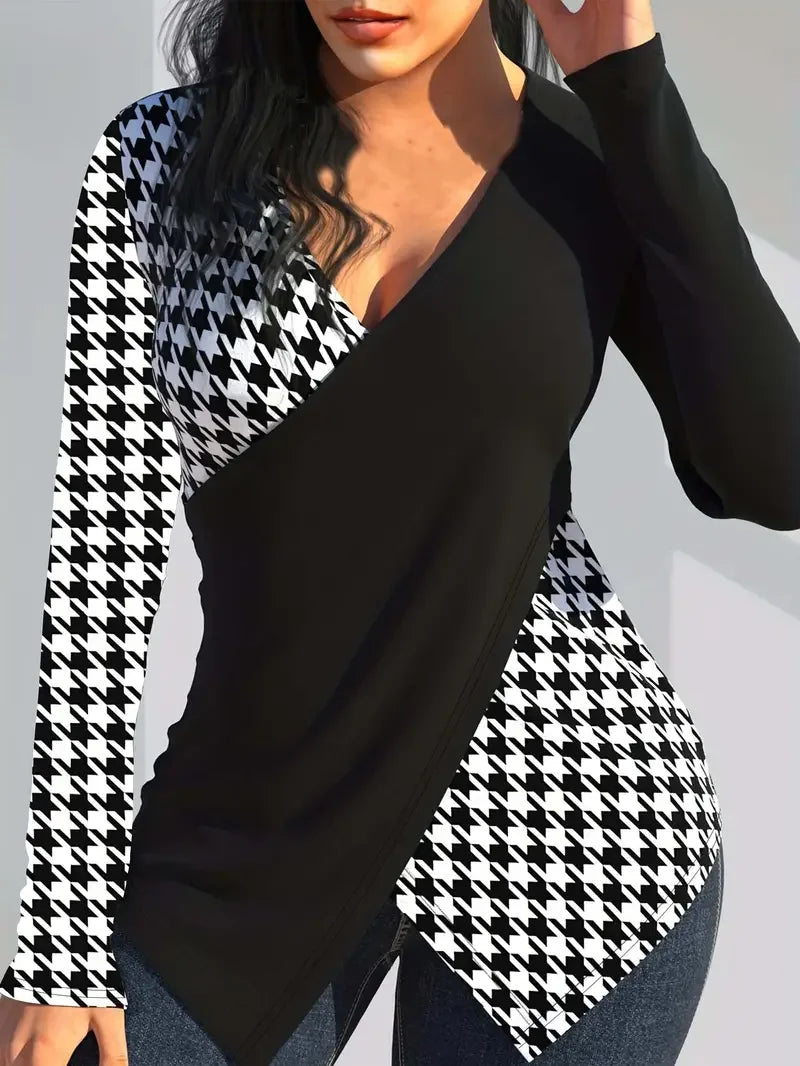 European and American Plus Size Women's Fitted Contrasting Tops and T Shirts
