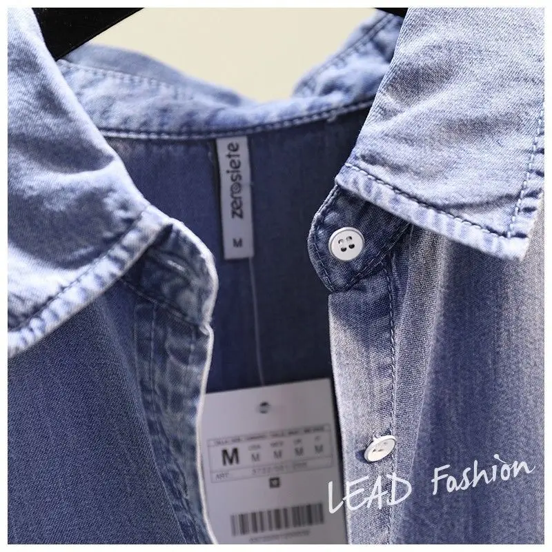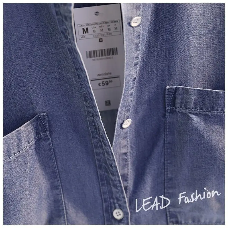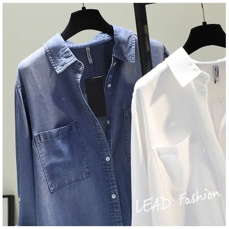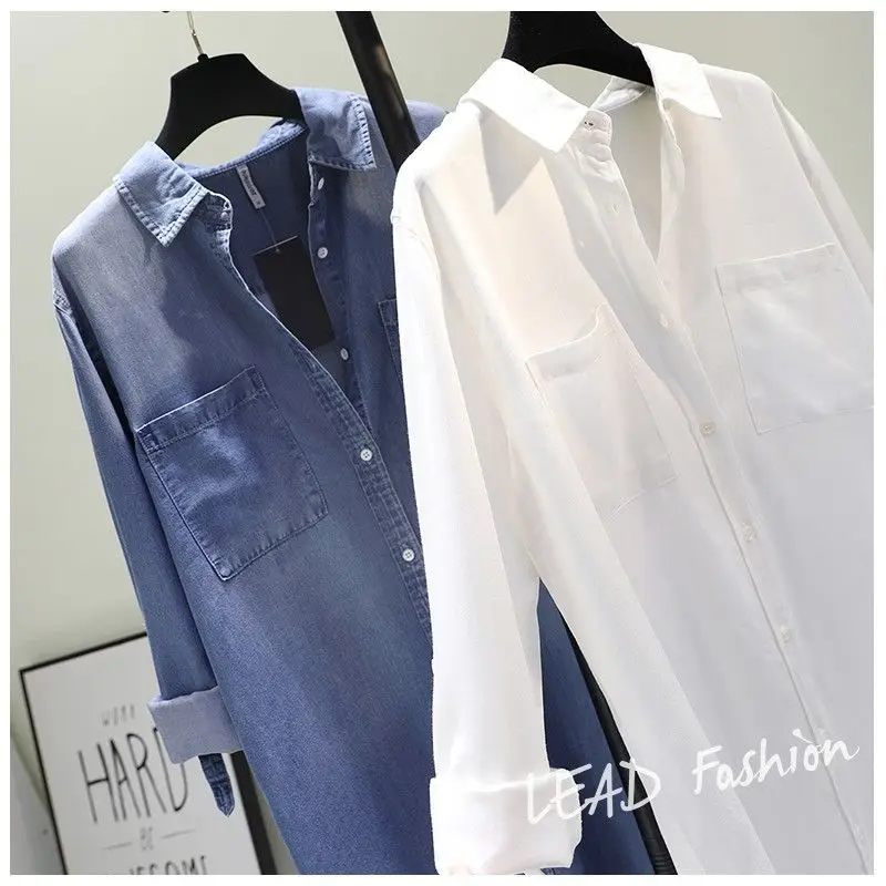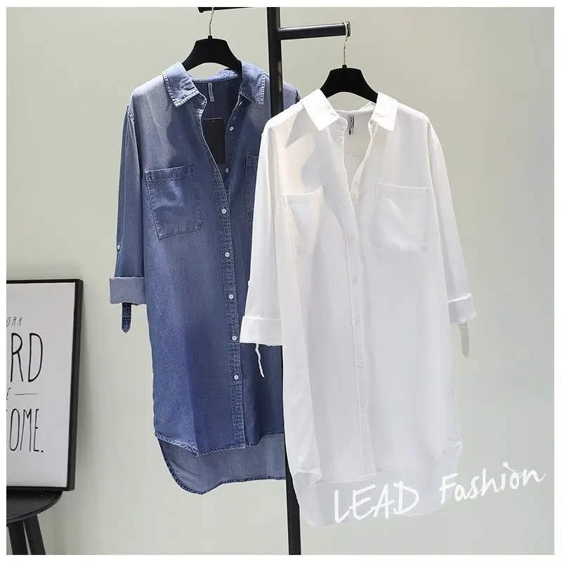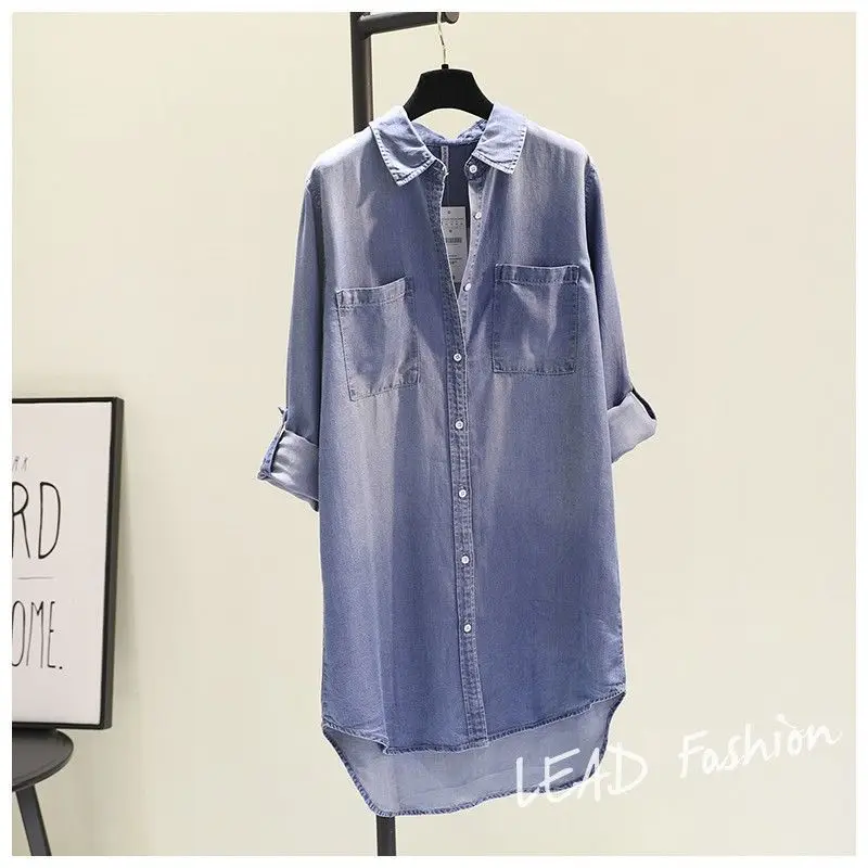Fashion Women's Clothing Shirt Medium Long Containing Cotton Shirt Loose Fit Long Sleeve Double Pocket Rolled Sleeve Thin Blouse