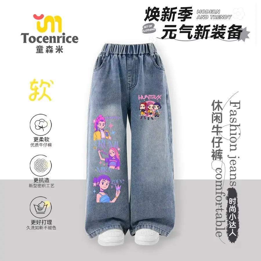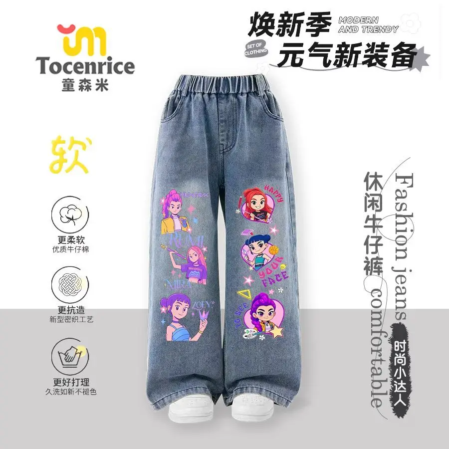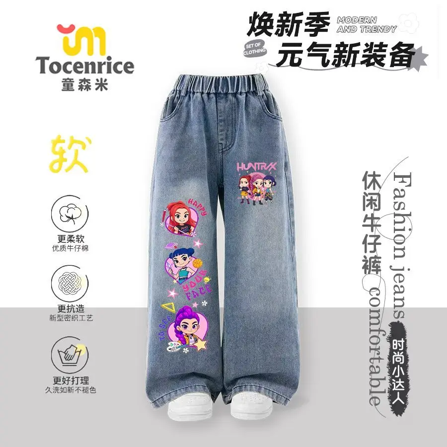 Kpop witch hunters children's jeans girls spring and autumn new straight trousers girls casual pants tide