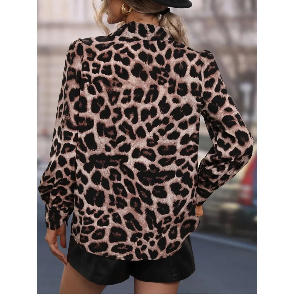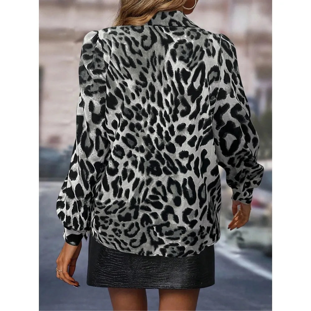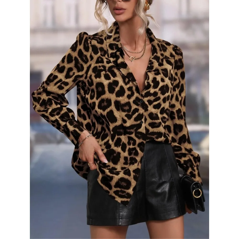 Plus Size 1XL-5XL Women Elegant Women's Casual Button Shirt with Trendy Leopard Print Perfect for Autumn Style Fitted Shirt