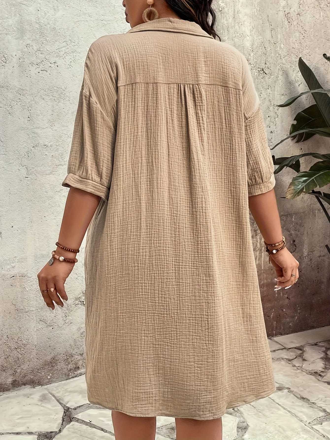 plus Size Casual Loose Women's Shirt Dress with Button-Up Collar Short Sleeve Commute Straight Cut Outdoor Dress
