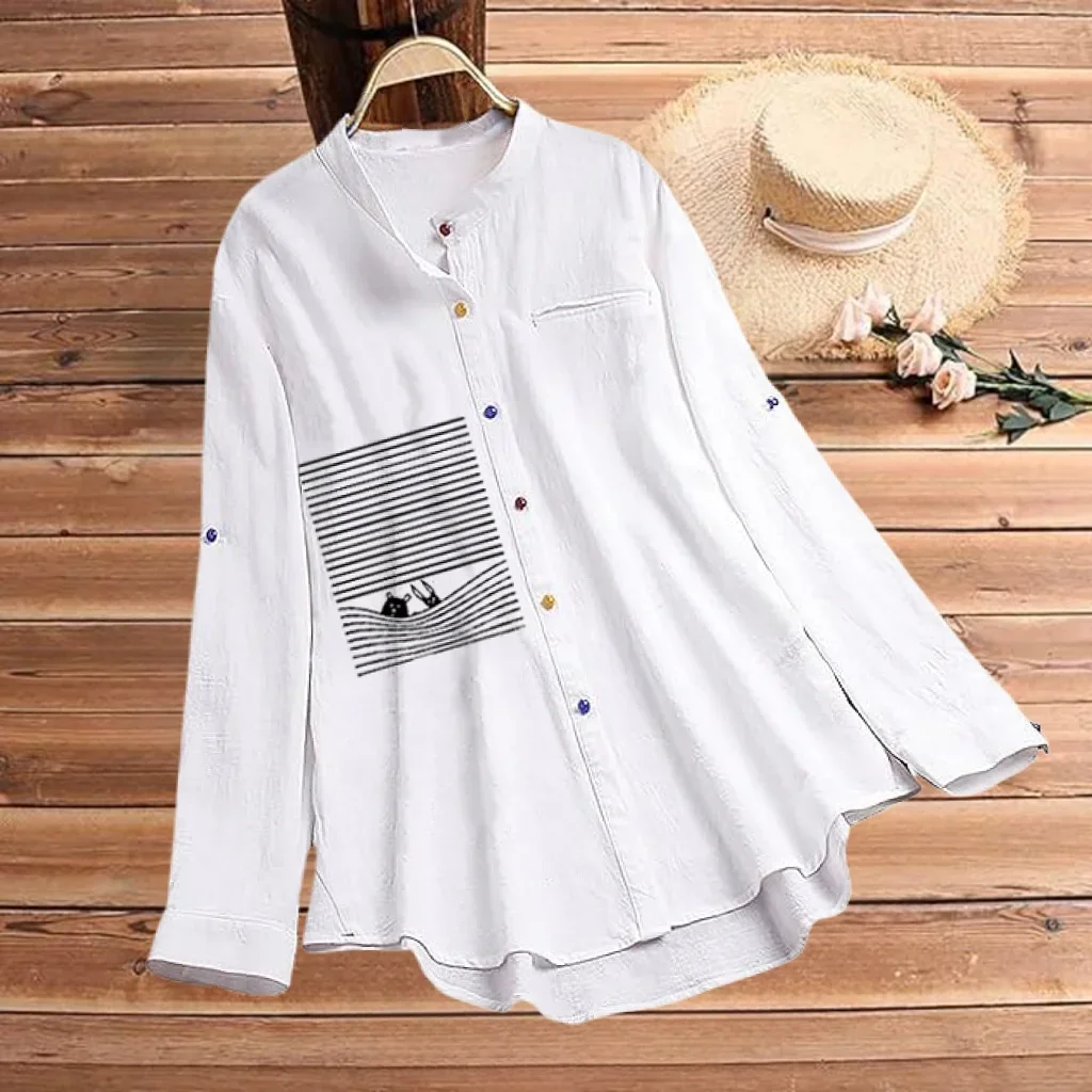 Plus Size in-Stock Best-Seller Simple Tops New Chic Printing Shirt Versatile Stand Collar Colorful Breathable Office Clothing