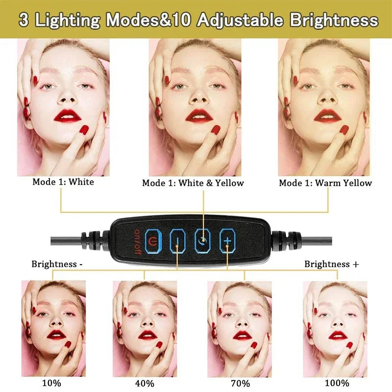 2. 10 ADJUSTABLE BRIGHTNESS & 3 COLORS LED LIGHT: The led light design with 10 adjustable brightness meets all your needs in different circumstances. It will come in handy whenever you need extra light for making up, taking photos, making videos, reading books, and live streaming!