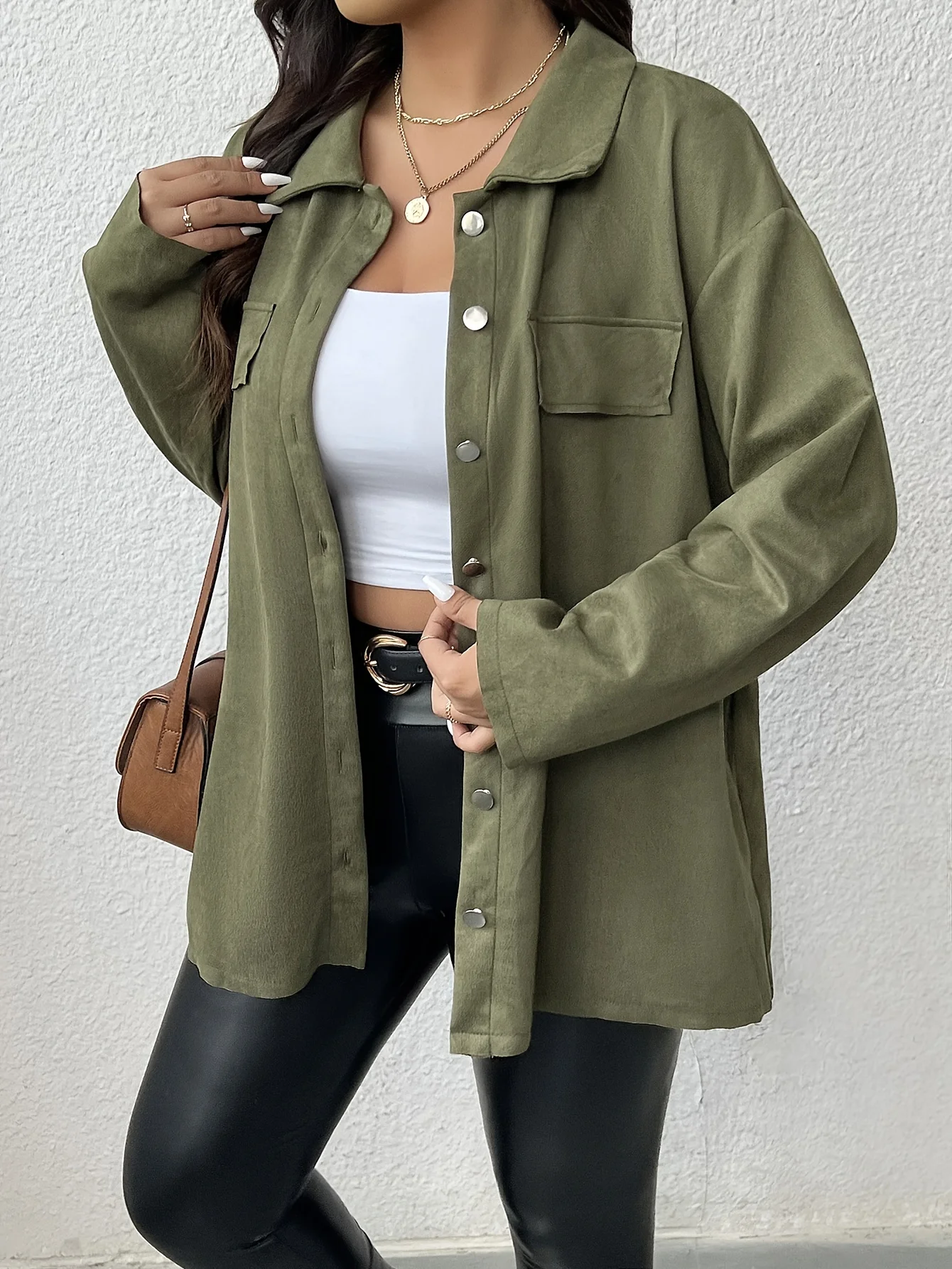 Upgraded plus size Women's clothing Shirt with Metal Buttons Long Sleeve Coat High-End Lapel Shirt Simple Casual Women's Top