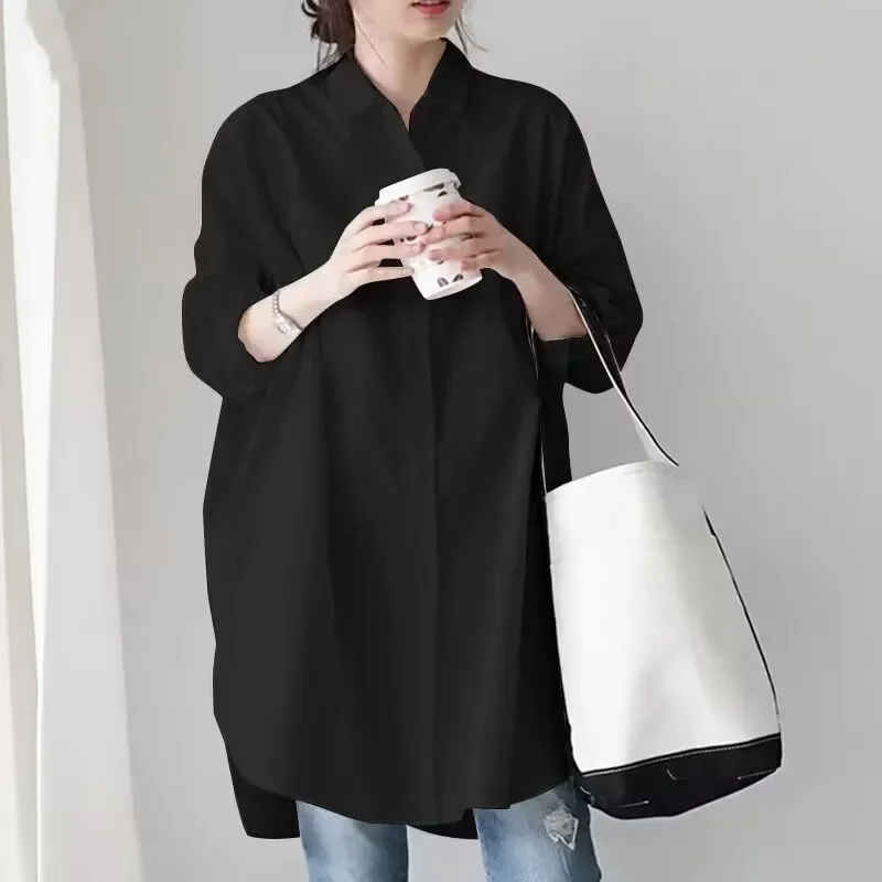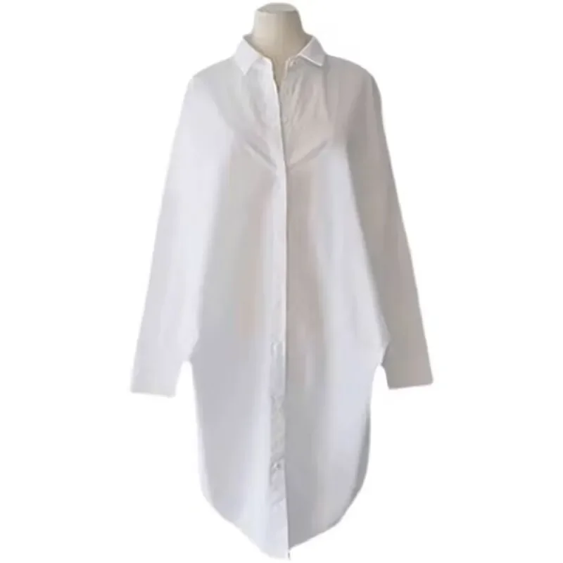 White Loose Long Sleeve Women's Shirt Lazy Design Sense Fashionable Midi New Style Button up Casual Office Wear